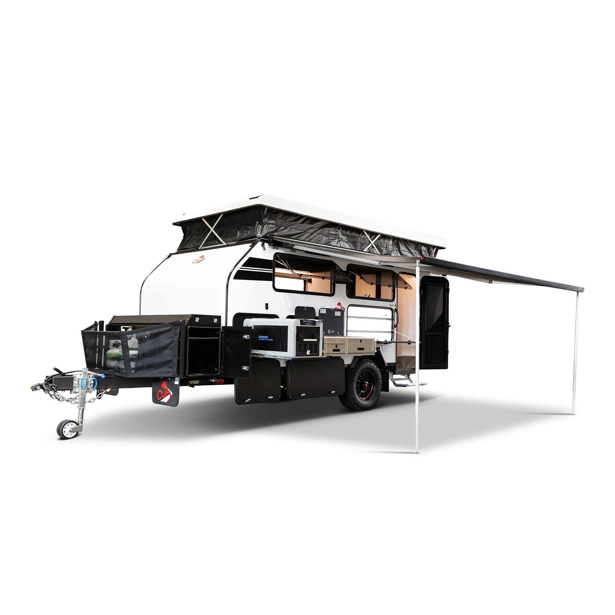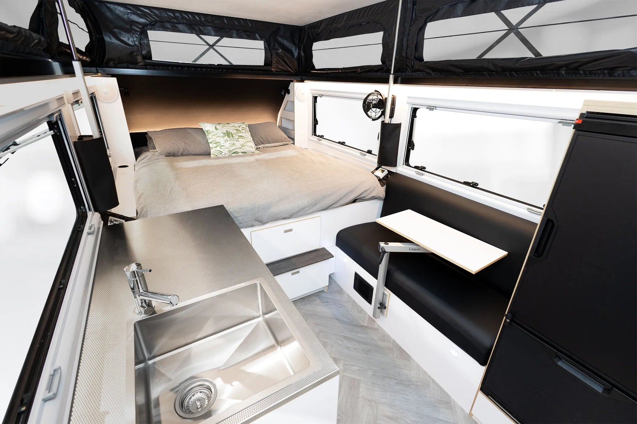 Its durable construction and independent suspension deliver a smooth, controlled ride across Australia’s toughest terrain, while its compact, electric pop-top design makes towing effortless.