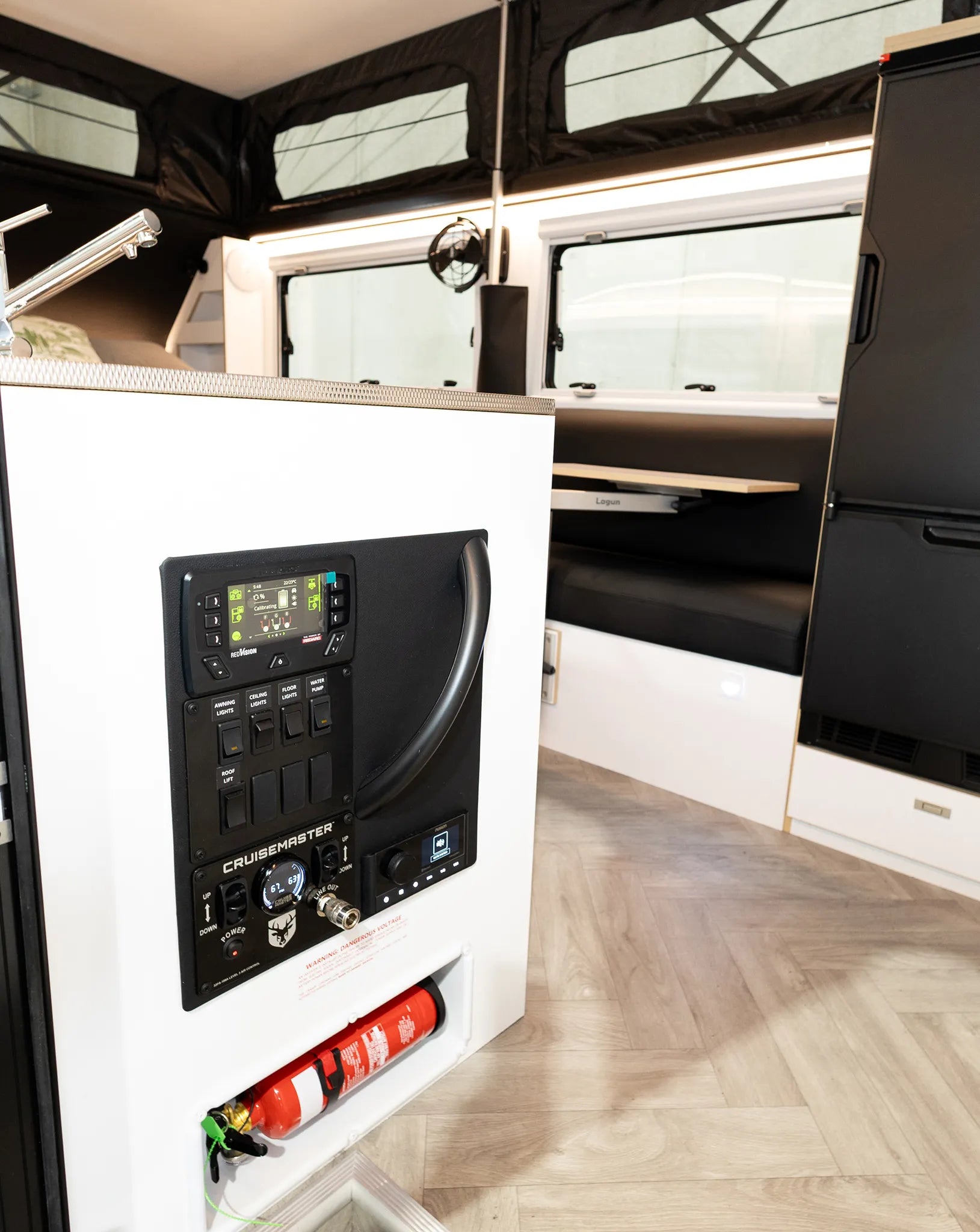 Multiple USB and 12V outlets keep your essentials charged, while optional smart upgrades like a Starlink-ready socket ensure you stay connected, even off the grid.