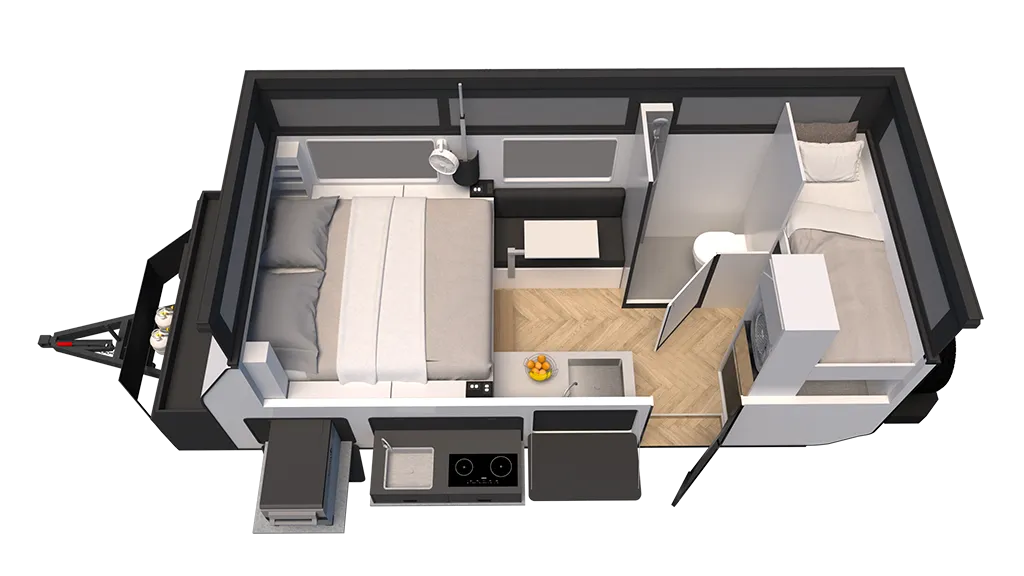 Every adventure looks different - and so does every H16. Choose from versatile interior layouts designed to suit your lifestyle, whether you’re travelling solo, as a couple, or with family.