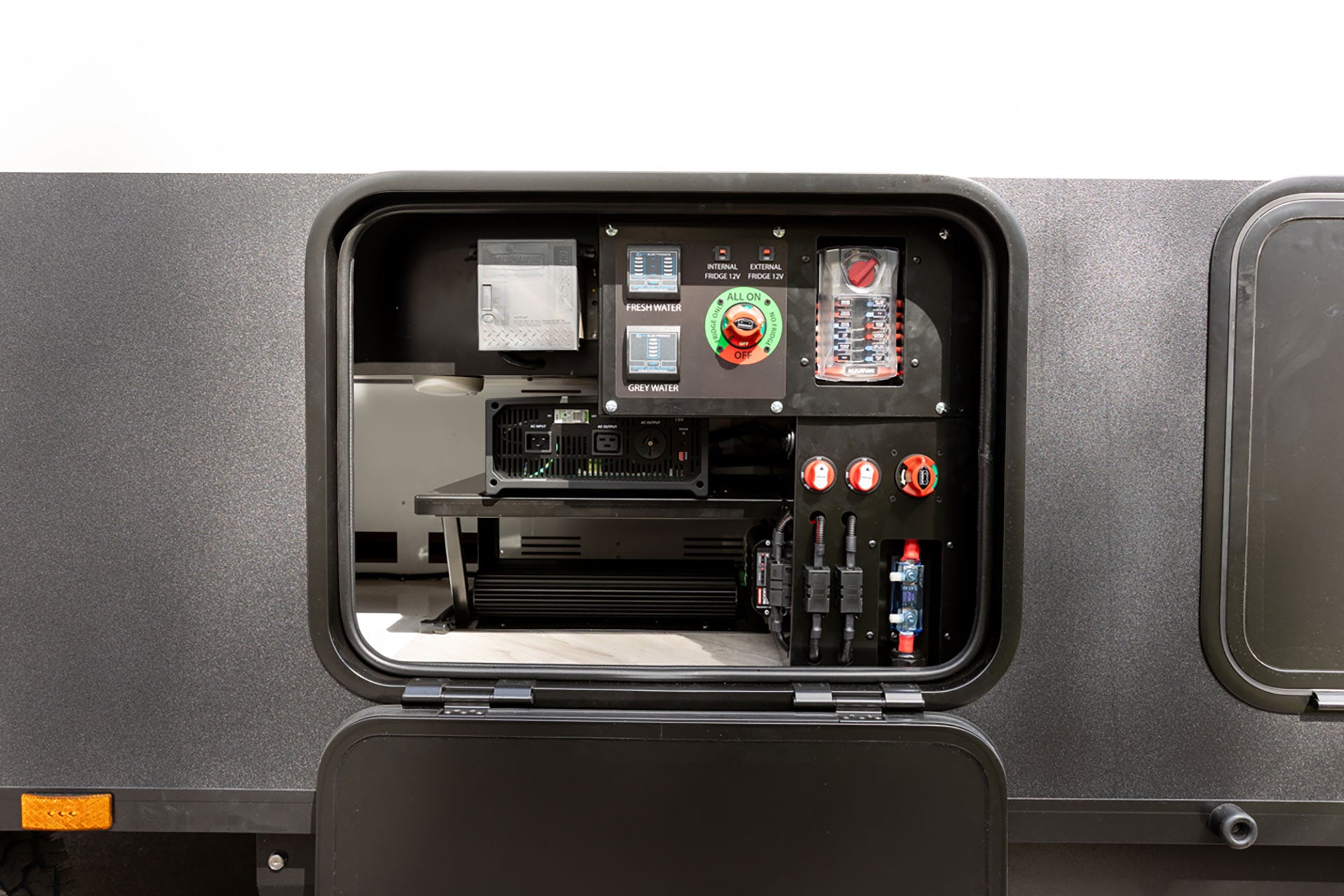 Both versions of the Wollomi include the Redarc BMS30 system, two 180w Redarc solar panels and a 150AH lithium battery.
