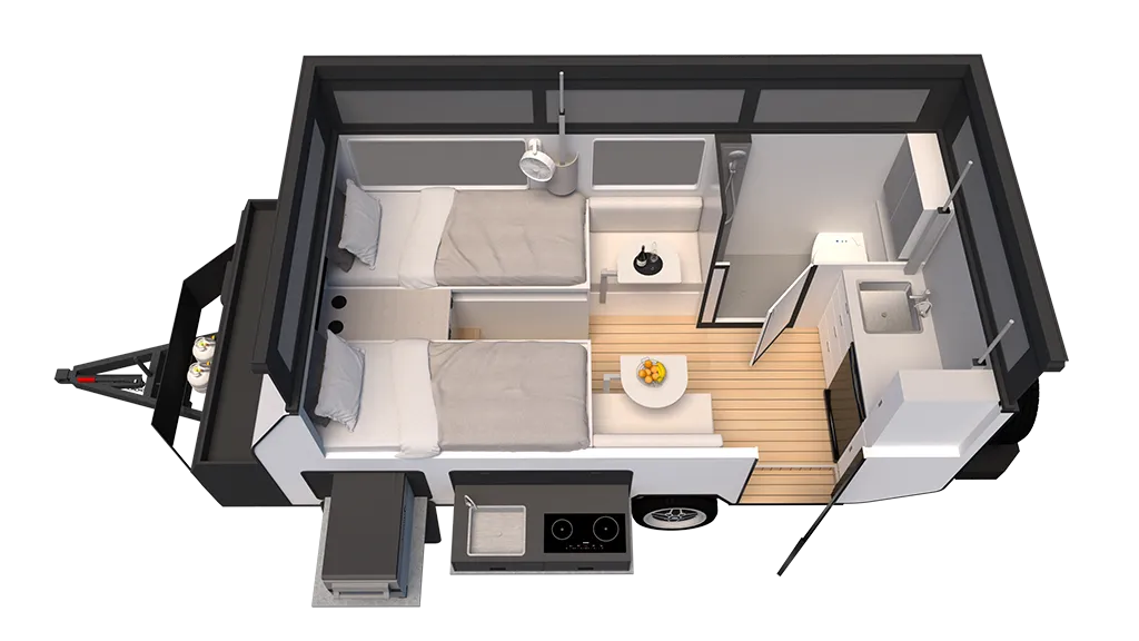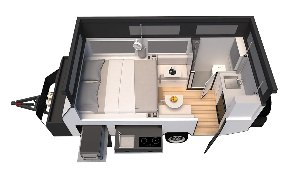 With a 14ft body, a compact nimble design, and CUB King Bed, the CUB H14 combines practicality and comfort in a truly off-grid-ready package. Whether you’re towing through the outback or relaxing by the coast, the CUB H14 is built to make every part of your journey exceptional.